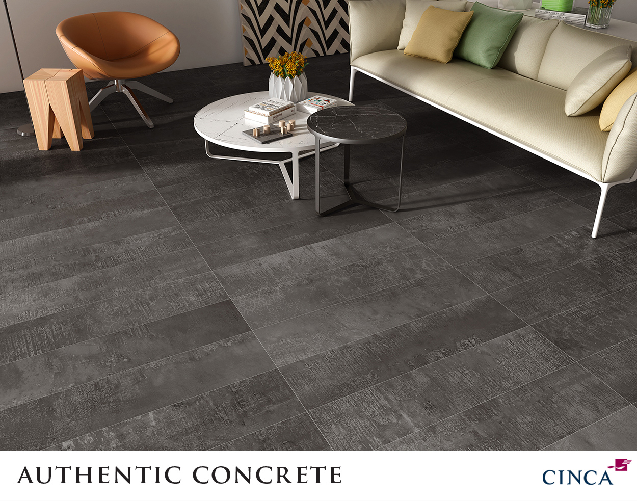 Die Fliesen der Serie Authentic Concrete von Cinca bestechen mit dem schlichten Charme des klassischen Betons. Die Bodenfliese ist aus durchgefärbtem dekoriertem Feinsteinzeug gefertigt, in vier verschiedenen Farbausführungen erhältlich und kann mit einem passenden Mosaikmuster und Dekorfliesen ergänzt werden. Außerdem ist die Fliese dank Frostresistenz auch für den Außenbereich geeignet und hat die Rutschfestigkeit R10/11 Klasse A.